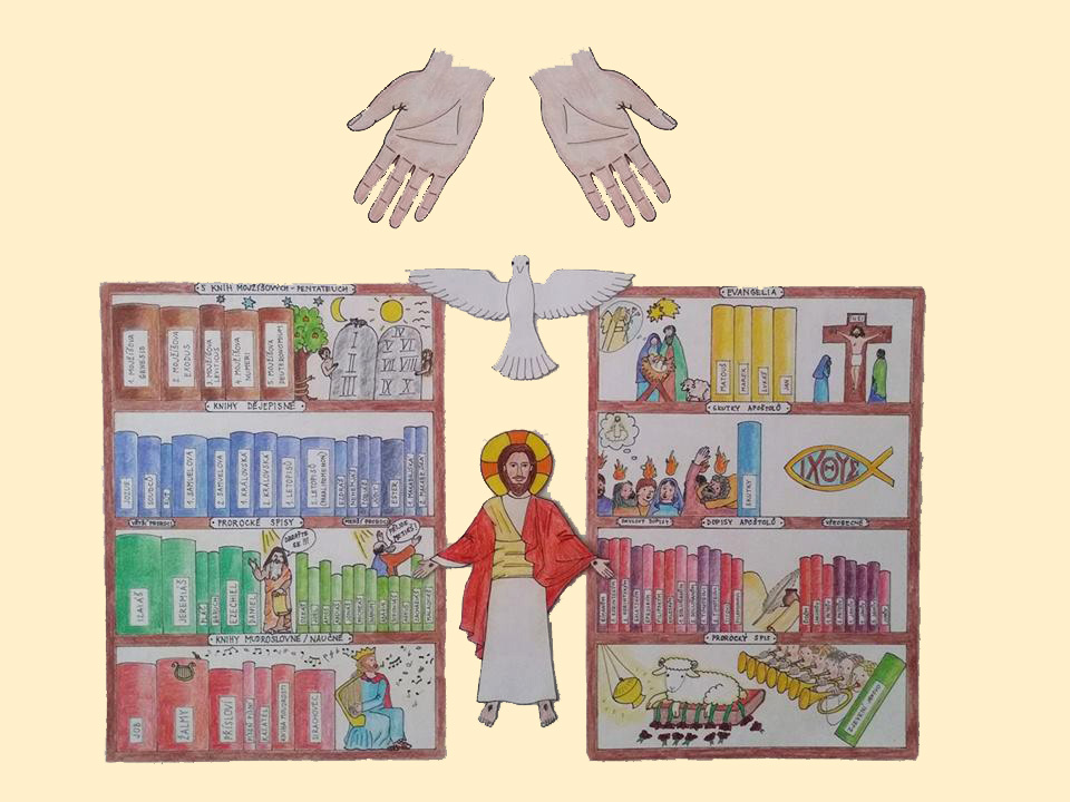 Tyto materiály je možné stáhnout jako omalovánku (lze tisknout i na A3) Starý Zákon, Nový Zákon, Kristus a Duch svatý, ruce (Bůh Otec)