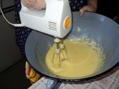 K utřenému cukru s máslem a žloutky přidáme 1 kg přesáté hladké mouky, dále přidáme kvásek, 6 lžic rumu, sůl, citronovou kůru a vanilkový cukr. Do tohoto těsta přiléváme podle potřeby postupně mléko.