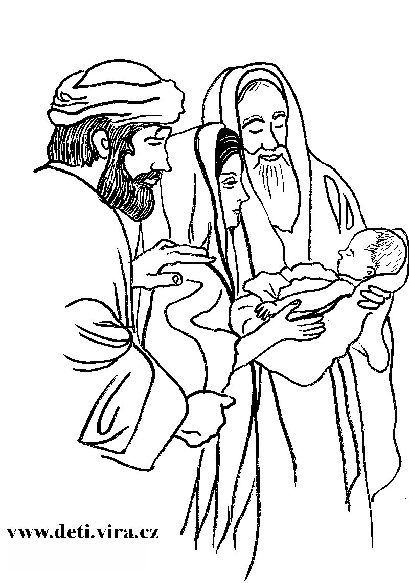 Uvedení Páně - doplňovačka Omalovánka, autorka: Soňa Häusl-Vad Obětování v chrámě
