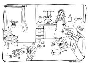 Milé děti, připravili jsme pro vás další omalovánky, na kterých se možná některé poznáte. Bráška se učí, sestřička si hraje, maminka vaří. A další bráška hraje na bubny. A co vy děláte doma? Uměli byste to nakreslit?