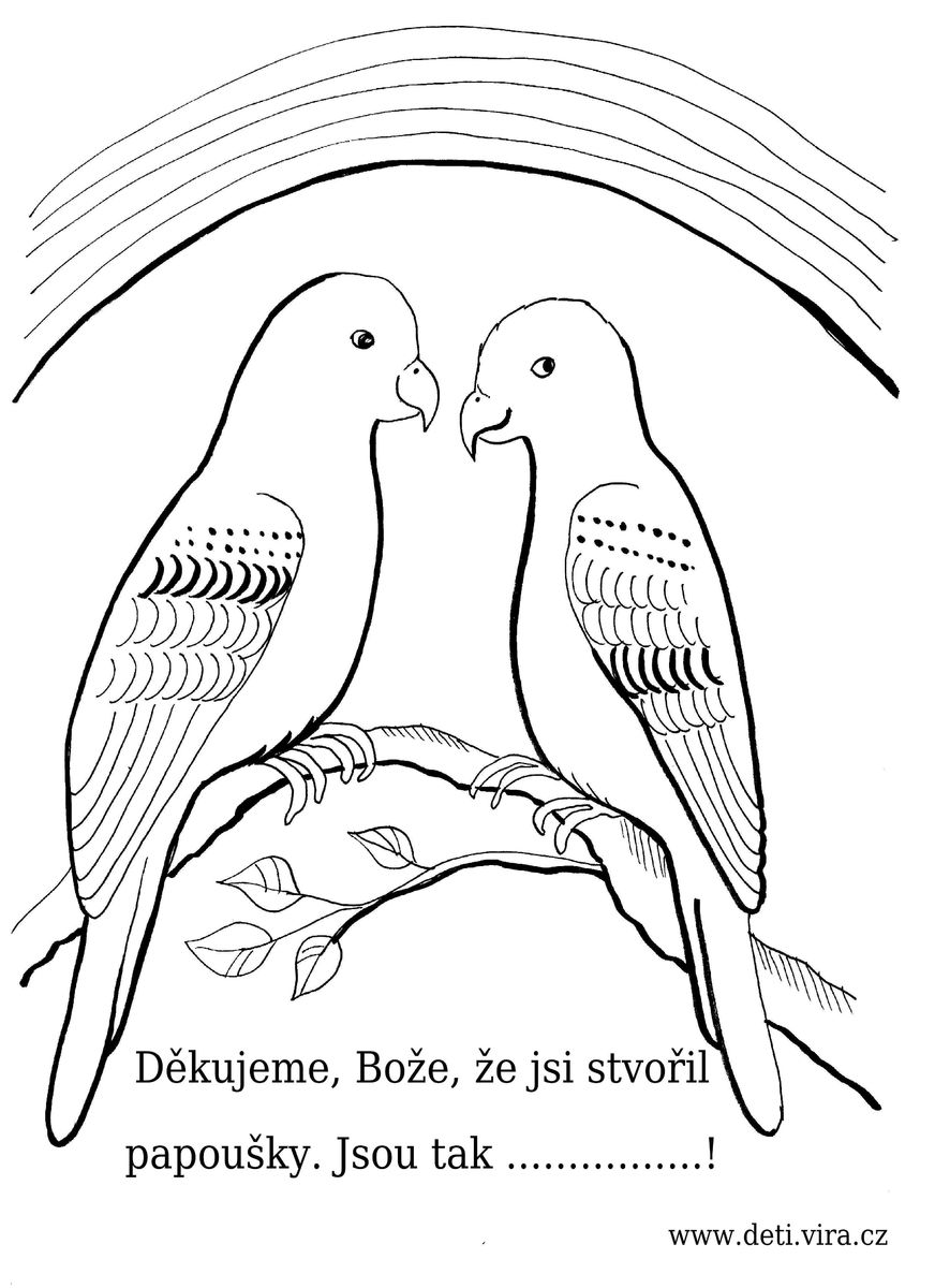 - Papoušci - Papoušci jsou jako semafory! Vybarvěte jim peříčka červeně, žlutě, modře! A doplň, jací asi mohou být papoušci, co myslíš?